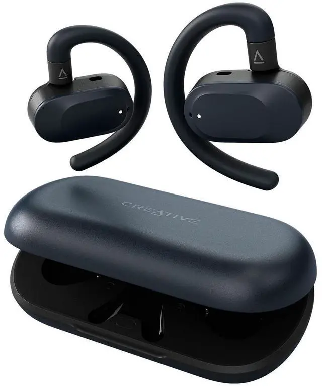 Creative Outlier Go Wireless Open-Ear Headphones with an Adjustable Fit and Ear Hooks, Up to 26 Hours Total Playtime, Dual Microphones, Bluetooth 5.4, IPX4 Water Resistant (Dark Blue)