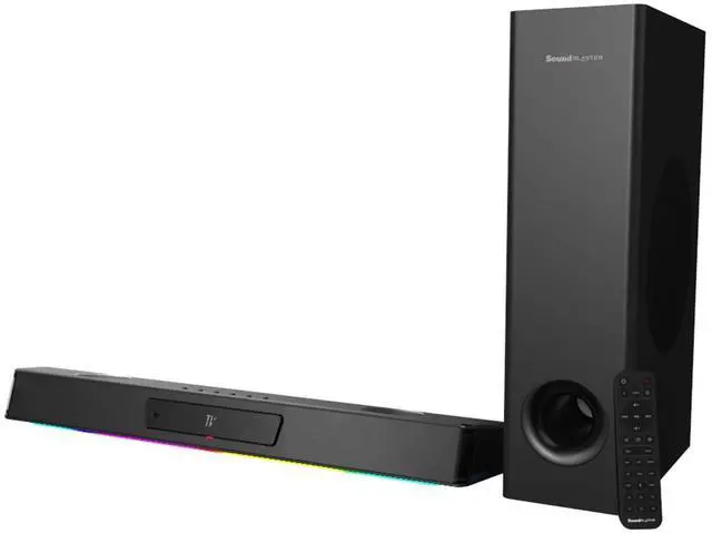 Gain competitive advantage in FPS games with SXFI BATTLE Mode and have the upper hand by accurately pinpointing your enemys location just by hearing the sound of their footsteps ^^ VERSATILE CONNECTIVITY AND BUILT-IN MICROPHONE Enjoy seamless connectivity options, including USB, HDMI ARC, optical port, as well as wireless Bluetooth 5.0. It works with various platforms, from gaming consoles as well as PC, Mac and mobile devices too. It also incorporates a built-in beamforming microphone for you to jump on calls directly from the soundbar ^^ CUSTOMIZABLE CONTROLS AND RGB LIGHTING Besides the basic audio controls, access custom functions saved onto one of the six customizable buttons on the remote control.