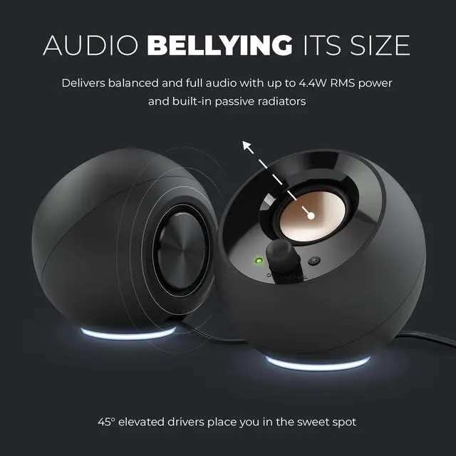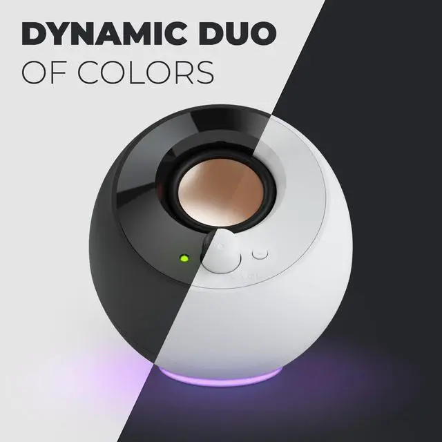 SET THE MOOD WITH RGB LIGHTING - 7 vibrant built-in RGB presets to elevate your setup aesthetic beyond the screen. From a dynamic spectrum of radiant colors to static glow, let the light shine ^^ DYNAMIC DUO OF COLORS - Make a statement and stand out with matte, orb-shaped speakers, comes in both black and white ^^ PERFECTLY MINIMALIST - Standing at just 116 mm / 4.6 tall, Creative Pebble SE fits into any corner of your room or house, adding an aesthetic flair without occupying much space. Plus, it features a convenient volume knob for quick controls ^^ PLUG-AND-PLAY CONVENIENCE - Simply plug the USB-C cable into an available USB port for power and the AUX input cable to the audio device for audio.