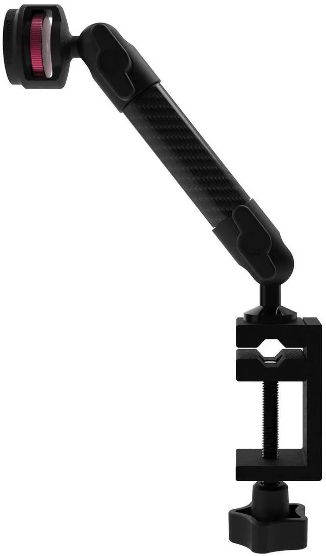 The MagConnect C-Clamp Mount is the best solution for attaching an iPad or tablet alike to a round or flat surface. The single carbon fiber arm of the C-Clamp Mount reliably mounts your iPad or tablet while keeping it nearby. This tablet mount is ideal for flat counters, poles, and rods such as warehouse shelving, corporate reception areas, office workspaces, back kitchens, restaurant front counters, creative organizations, and photography studios. Attach your iPad or tablet to a microphone stand or camera tripod via the MagConnect C-Clamp Mount. While keeping your microphone or camera mounted, the C-Clamp can be attached to the side of the stand to add an iPad or tablet to your existing setup for easy preview.
