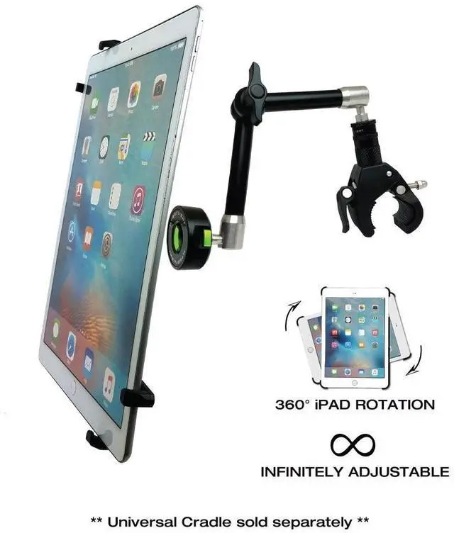 When used with one of MGFs Sport Mounts it is the perfect mobile device mounting solution for airplanes, helicopters, cars, trucks, big rigs, RVs, motor homes, and boats. The Universal Cradle includes additional longer clips to allow any size case on your iPad or Tablet. ^^ SUPER STRONG ADJUSTABLE GRIP attaches securely to any yoke, steering wheel, handlebar, or any other shaft, pipe, pole, or bar from 5/8 to 1.5 diameter, making it the perfect iPad, iPhone, phone, tablet, GPS, camera, or ELD mounting solution for airplanes, helicopters, cars, trucks, big rigs, RVs, motor homes, and boats.