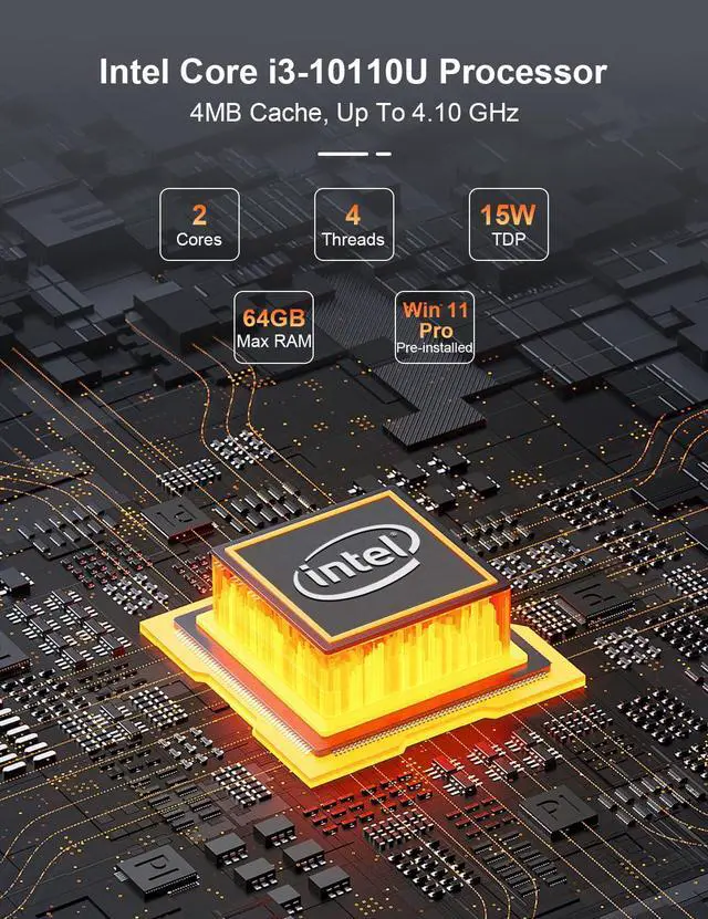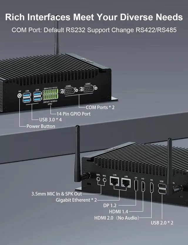 • Baieyu Industrial PC with Core i3-10110U (Up to 4.10GHz), 8GB DDR4 RAM 256GB M.2 SSD, Fanless Industrial PC, 2xRS232 COM, Support RS422/RS485, 1xGPIO, 2xHD, 1xDP, 2xRJ45 LAN, 6xUSB Port, Win 11 Pro