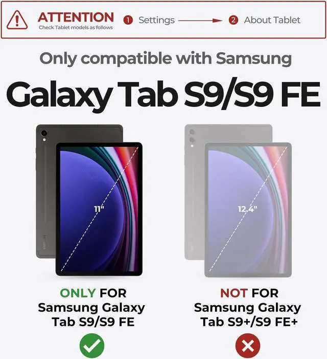 [(ENHANCED COMPATIBILITY)] Exclusively designed for 2023 Samsung Galaxy Tab S9 11 inches / S9 FE 10.9 inches. Compatible with Galaxy Tab S9 (SM-X710/SM-X716B/SM-X718U) and Galaxy Tab S9 FE (SM-X510/SM-X516B/SM-X518U). Note: It DOES NOT fit the Tab S9+/S9 FE+ 12.4 inches. Please confirm your tablet model before purchase! (Tablet and S Pen not included.)