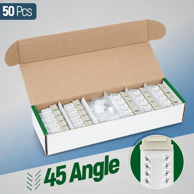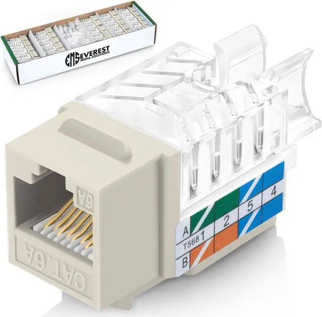 Everest Media Solutions 45-Degree Angled CAT6A Keystone Jack in Ivory - Slim Profile, UTP RJ45 Female Ethernet Connector - Compatible with Speed Termination Tool - 45Term - 50-Pack