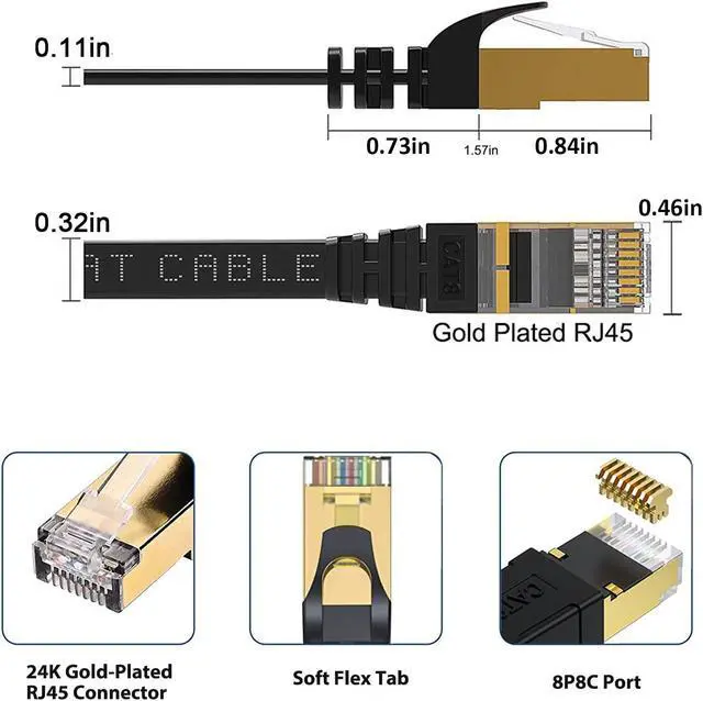 Great Stability : Cat-8 Shielded gigabit ethernet cable is composed of 4 pairs Stranded Bare Copper Conductors, SSTP (Screened Shielded Twisted Pair) Shielding and 50 micron 24K gold plated connectors. Cat8 ethernet cord 150ft provides the better protection against crosstalk, EMI/RFI interference and Cat8 internet cable ensures accurate data transfer.