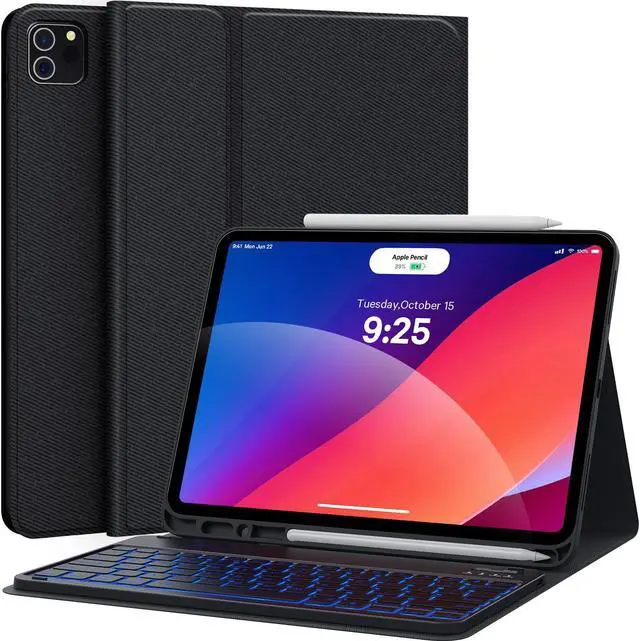 CHESONA Keyboard for iPad Pro 12.9 2022 6th Generation, iPad Pro 12.9 Case with Keyboard 5th/4th/3rd Gen - 7 Colors Backlit - Detachable - Pencil Holder - Stand Cover -iPad Pro 12.9 Keyboard, Black