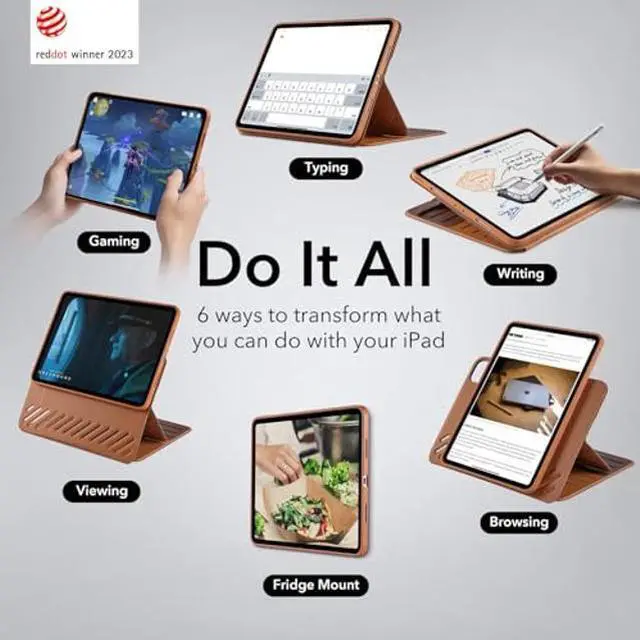 Powerful Versatility: achieve up to 9 different angles, 6 for viewing and 3 for writing, via the dual support brackets and 6 magnetic grooves, then instantly detach for hands-on gaming or to magnetically attach to your fridge