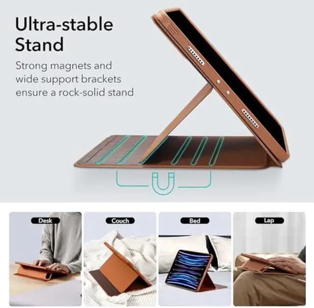 ESR for iPad Pro 11 Inch Case (2022/2021 / 2020/2018, 1st, 2nd, 3rd & 4th Gen), Removable Magnetic Cover, Adjustable Portrait/Landscape Stand with Raised Display View, 9 Standing Angles, Brown