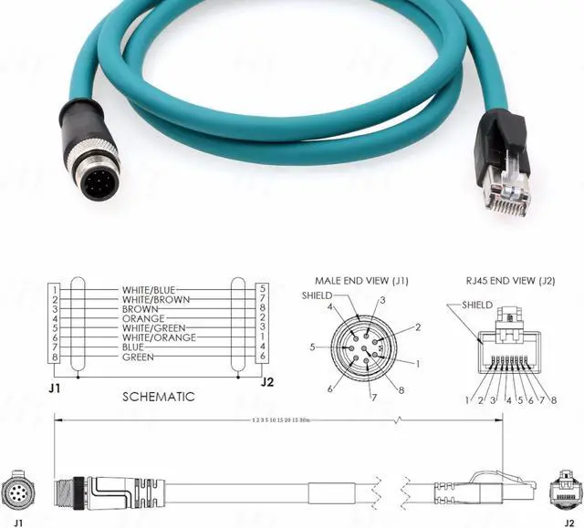 HangTon Ethernet M12 8 Pin A-Coded RJ45 Cable for Cognex in-Sight 5000 7000, DMR 200 500, ism1400 PLC to Network Switch Router PC 1 Meter