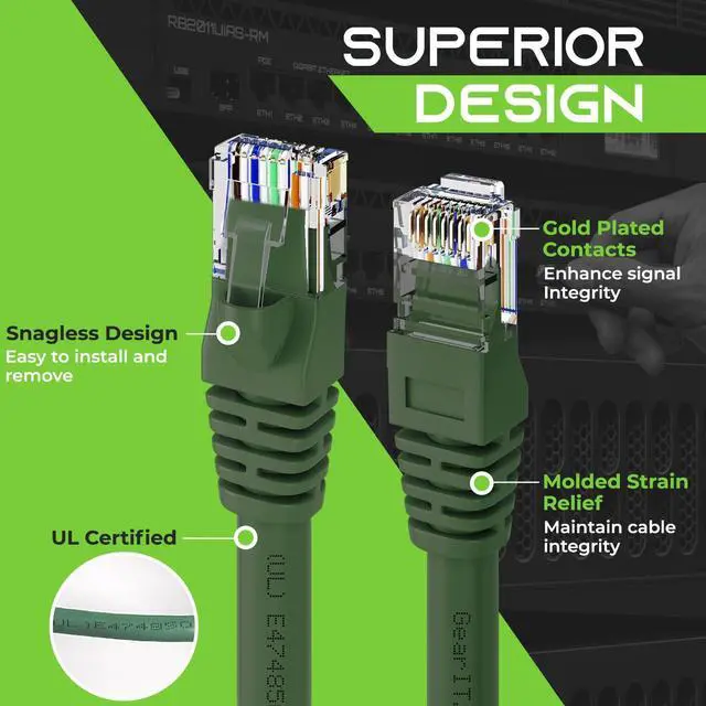 future-proof your network for 10-Gigabit Ethernet with GearIT Cat 6 network patch cables. With GearIT Cat6 cables, your network will be ready for the future and will still be working when you get there. industry standard ANSI/TIA-568-C. 2, Cat 6, etc. Verified cables with High compliance RJ45 (8P8C) snag-less connectors and molded strain relief boots. Bandwidth rating of up to 550 MHz ensures compatibility with Ethernet 10BASE-T, 100base-tx (fast Ethernet), 1000base-t (Gigabit Ethernet), 10GBase-T (10-Gigabit Ethernet), peer-to-peer, and any other applications that utilize networking cables including telephony, home automation and long distance video transfer technologies like HMDI over Ethernet.