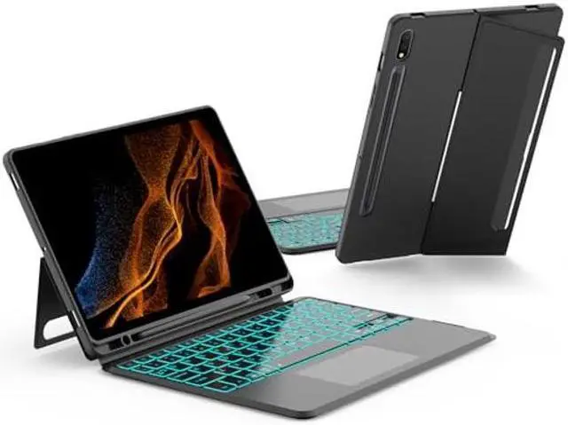 JUQITECH Trackpad Keyboard Case for Samsung-Galaxy-Tab S8 S7 11" 2022/2020, SM-X700/X706 SM-T870/T875/T876 Smart Tablet Protector Case Kickstand Magnetic Detachable Wireless Backlit Touchpad Keyboard