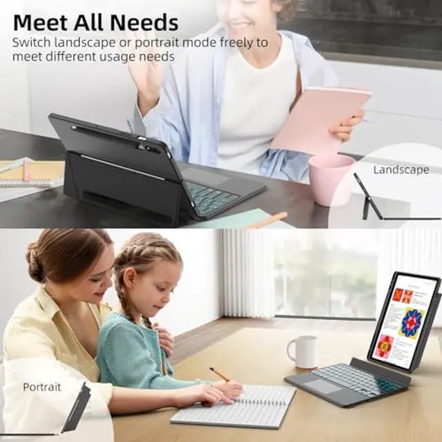 [(Smart Magic Case with Wireless Keyboard)] Magnetic detachable design makes keyboard case create more possiblities. With keyboard, you can upgrade the tablet to getting stuff done mode and enjoy PC-Like Experience; Remove the keyboard, you can use the case with lexible kickstand separately for reading, or go vertical enjoy all the things that work best in portrait