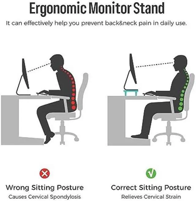 [Relieve Cervical Strain] - The Ergonomic monitor riser to help you develop correct sitting habits. Proper sitting posture can effectively help you prevent back & neck pain daily.