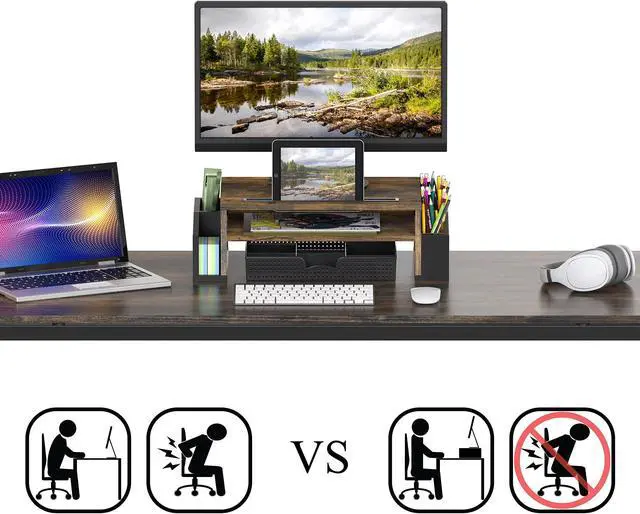 • Raises your monitor to a comfortable viewing height. Reduce neck and eye Strain.