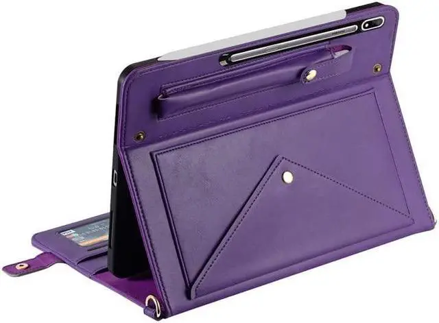 The external pocket and internal multiple slots are designed to store business cards, ID, credit cards, bills, tickets or invoices at any time and any place. Also comes with a pen holder pocket for your S Pen.