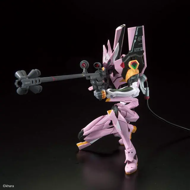 Evangelion: 3.0 You Can (Not) Redo, the Multipurpose Humanoid Decisive Weapon, Artificial Human Evangelion Unit-08 Alpha joins the Real Grade Eva lineup! True to the mission of the Real Grade line to make these larger than life characters real, the RG Evangelion features intricate linked parts construction to represent the relaxation and contraction of muscle fibers resulting in a very close emulation of human-joints. The movement of the spine and shoulder blades are linked to the armor parts and follow the movement of the arms and chest, shifting as needed to prevent parts from obstructing each other. From this, realistic humanoid crouching and weapon holding poses are possible. Its characteristic, the ultra-long-distance is included along with Pallet Rifle, 2 Progressive Knives, Umbilical Cable, and 6 types of hands in different expressions.