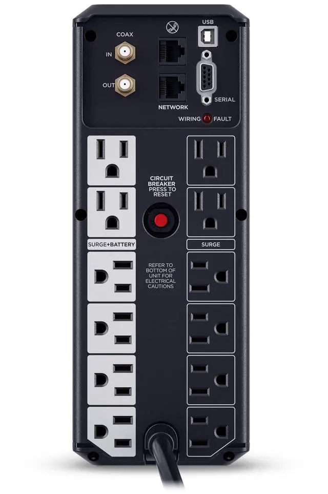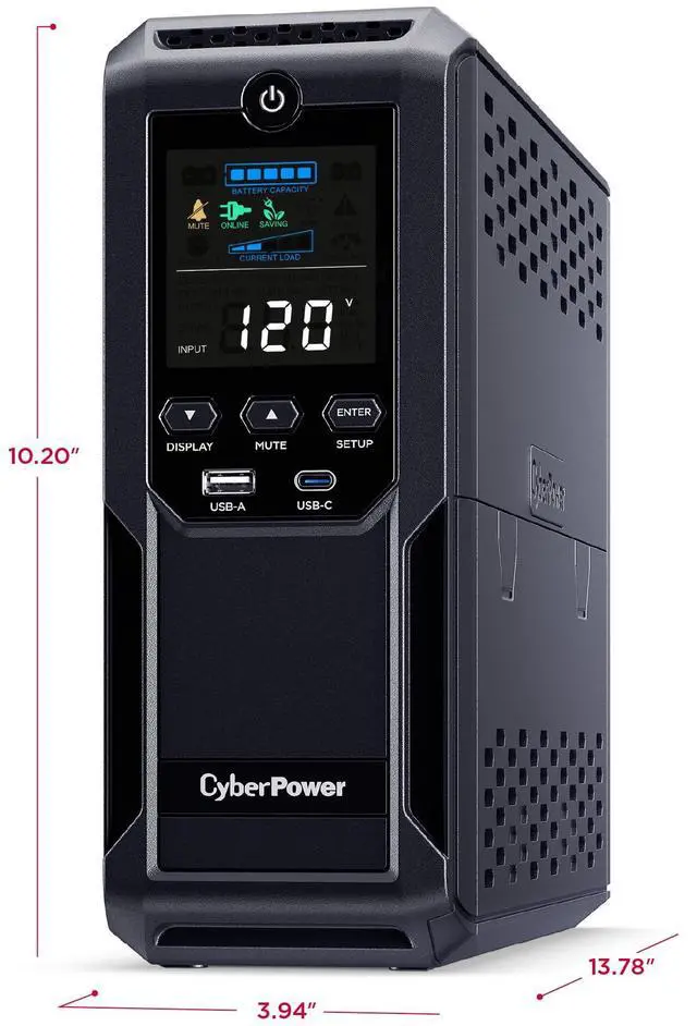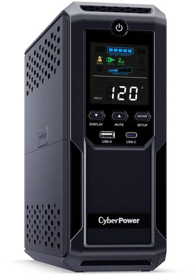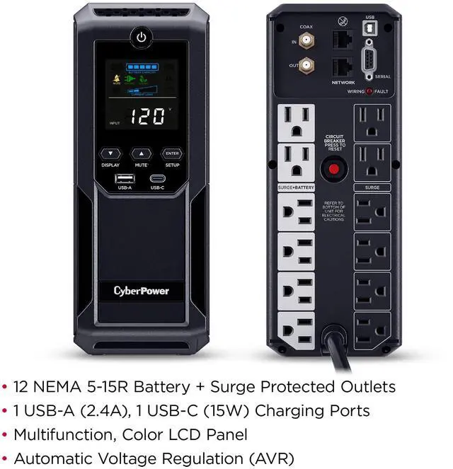 A mini-tower UPS with line interactive topology, the CyberPower Intelligent LCD CP1500AVRLCD3 provides battery backup (using simulated sine wave output) and surge protection for desktop computers, workstations, networking devices, and home entertainment systems. The CP1500AVRLCD3 uses Automatic Voltage Regulation (AVR) to correct minor power fluctuations without switching to battery power, which extends battery life. AVR is essential in areas where power fluctuations occur frequently. The CP1500AVRLCD3 comes with a three-year warranty (including coverage of batteries) and a $500, 000 Connected Equipment Guarantee.