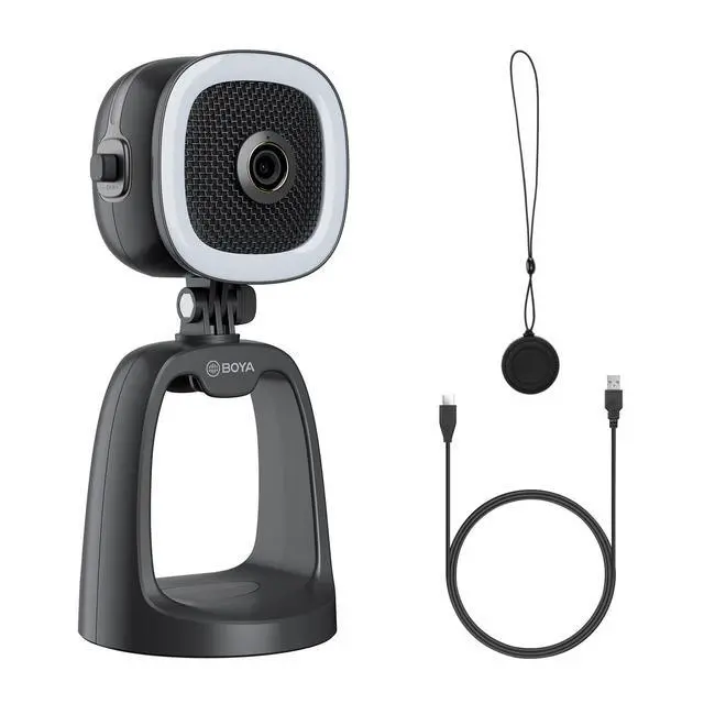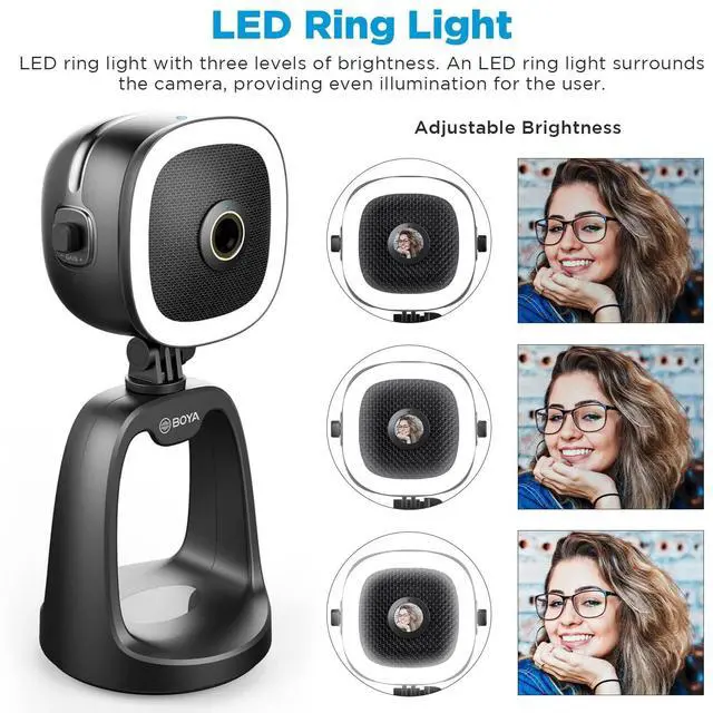 CARDIOID DIRECTIONAL MICUSB desktop microphone BY-CM6A with cardioid pickup mode. Focus on collecting the sound in front of the microphone. And effectively reduce background noise. Whether in a quiet environment or in a space with noisy sound, using the cardioid pickup mode microphone helps to reduce the background noise of reflected sound. ^^ MICROPHONES, CAMERA, FILL LIGHT IN ONEBY-CM6A combines the functions of microphone, camera and fill light in one. The built-in high-quality 1080p HD camera provides high-definition images, and the LED ring fill light has three levels of light for even fill light.