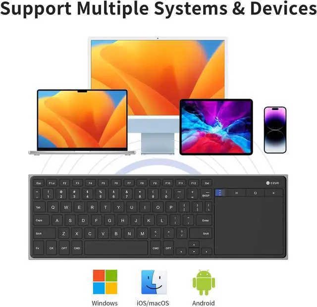 CZUR Rechargeable Bluetooth Keyboard with Touchpad, Portable Computer Keyboard with Trackpad, Wireless Ultra Slim Keyboard for PC/Laptop/Tablet/Phone