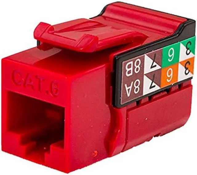 Vertical Cable Cat6 90 Degree Keystone Jack - Easily Snaps into Housing or Wall Plate - 25 Pack (Red)