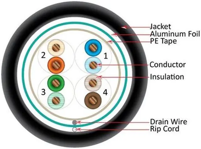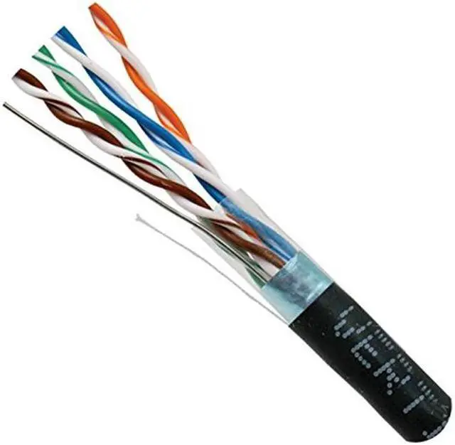 This Cat5e shielded twisted pair F/UTP cable is a high performance data communication cable suitable for 350mhz high speed applications. It has excellent attenuation and crosstalk characteristics and exceeds TIA/EIA-568-C. 2 specification. This ethernet cable is designed for indoor and riser network installations and is approved by ETL to be type CMR. The wires are 24 awg in size and are made of solid bare copper conductors. All 4 pairs are easily identified by color stripes. The insulation material is PE and the jacket is made of PVC and the cable is equipped with AL foil as a shield with Drain wire.