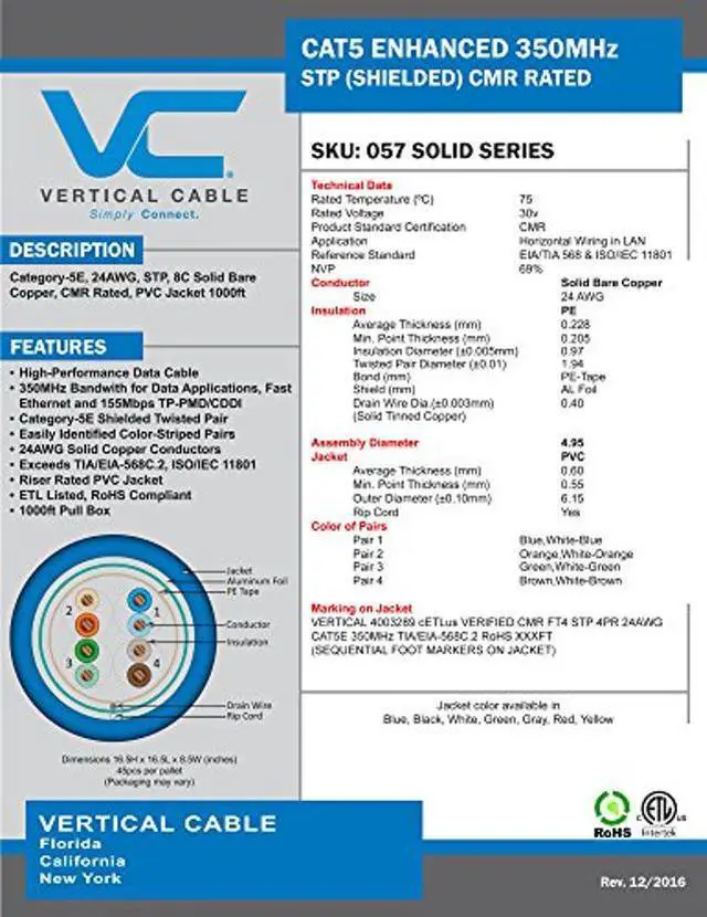 This cable is supplied in 1000 ft pull box and sequential length markings are printed on the jacket. Brand for this product is Vertical Cable.