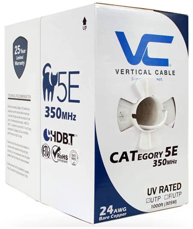 Vertical Cable Cat5e, 350 Mhz, UTP, UV Jacket, Outdoor, CMX, 1000ft, Bulk Ethernet Cable, White