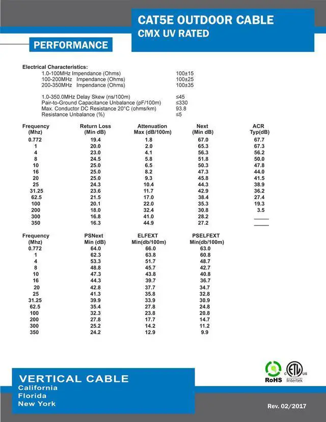• Cat 5e 350Mhz UTP UV resistant 1000 feet Cable