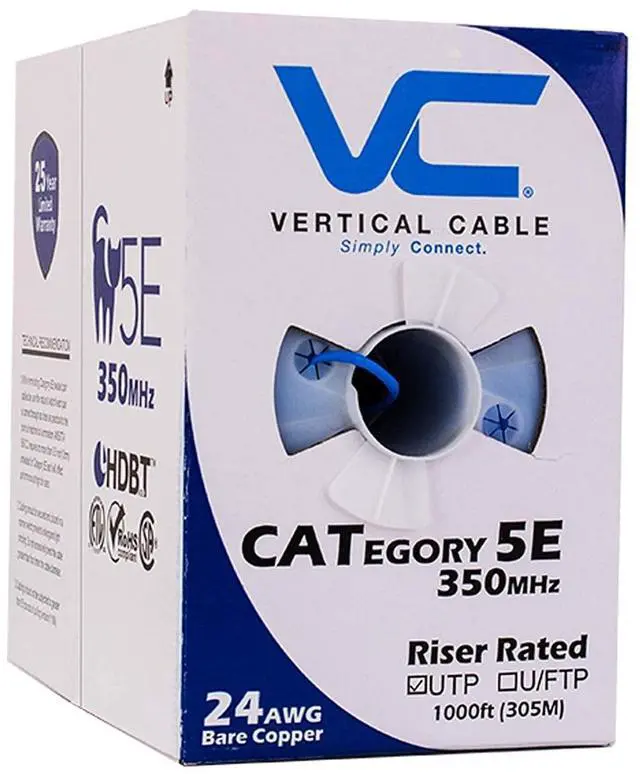 Vertical Cable Cat5e, 350 MHz, UTP, 24AWG, 8C Solid Bare Copper, 1000ft, Bulk Ethernet Cable - 151 Series, Blue