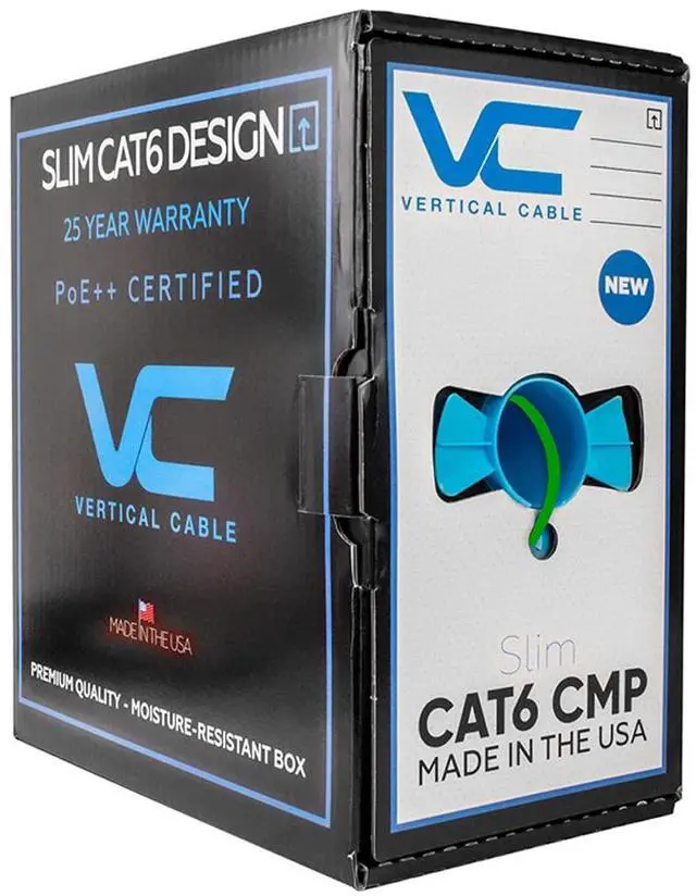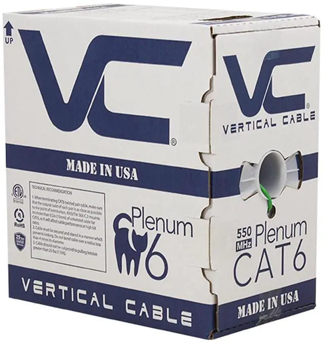 Vertical Cable CAT6, 550 MHz, UTP, 23AWG, 8C Solid Bare Copper, Plenum, 1000ft, Bulk Ethernet Cable - Made in USA, Green