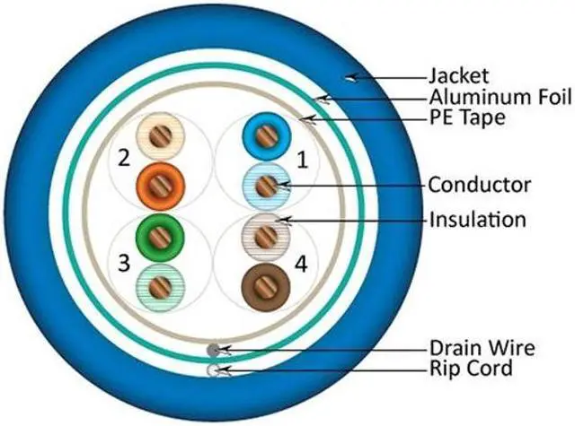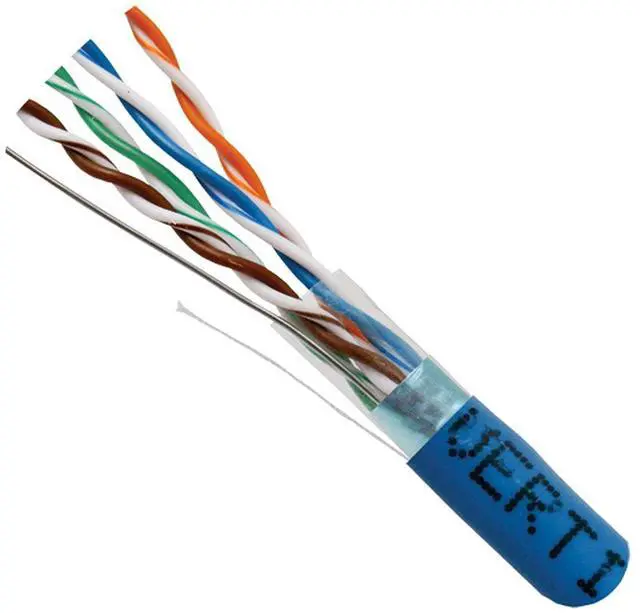 Vertical Cable Cat5e, 350 MHz, Shielded, 24AWG, Solid Bare Copper, 1000ft, Bulk Ethernet Cable, Blue