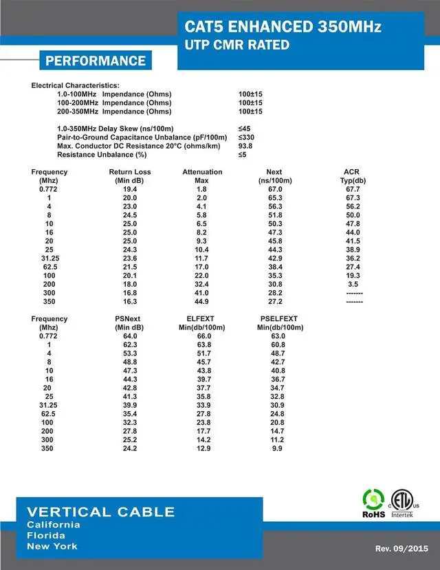 • Unshielded Twisted Pair (UTP) Cable - 350 MHz