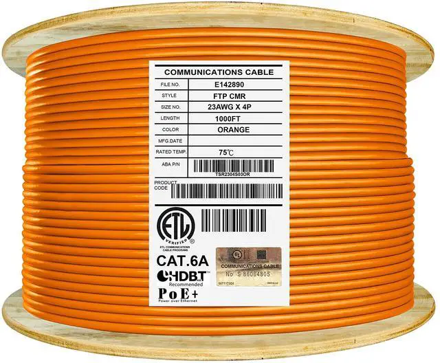 Cat6A shielded Riser cable supports 10Gb ( 10 Gigabit) Ethernet and 650MHz up to 328 Feet. Power devices such as: POE (Power Over Ethernet), computers, routers, IP Cameras