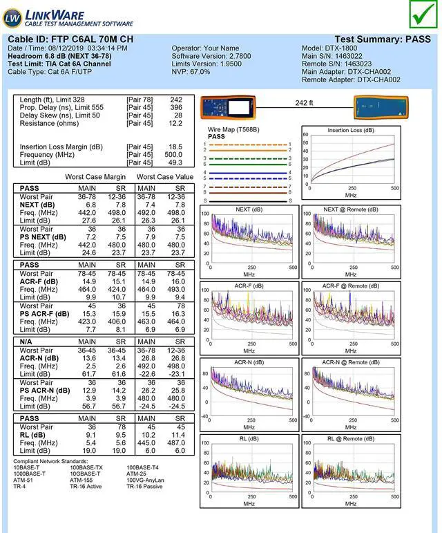 Cat6A Shielded Riser (CMR) bulk cable is 1000ft, 4 Unshielded Twisted Pairs with an overall foil shield around all 4 pairs, 23AWG, Solid Copper Conductors for optimal signal strength. Get 3-5 dB extra margin over EIA/ TIA-568.2-D standards. Suitable for PoE, PoE+, PoE++. The only Cat6A shielded riser cable with UL-LP Certification for safety compliance at operation during increased power and heat generation. Our Cat6A has been tested with a Fluke DSX-8000 Versiv Cable Analyzer.