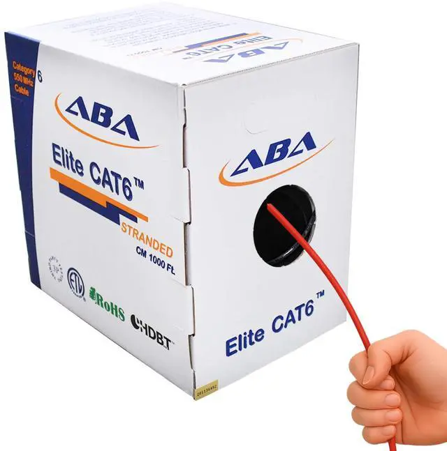 Infinity Cable Products Elite Cat6 24AWG Stranded - CM, 1000ft, Unshielded, More Flexible, Bare Copper, 550MHz, ETL & UL Listed, Bulk Ethernet Cable, Easy Pull Box, Red