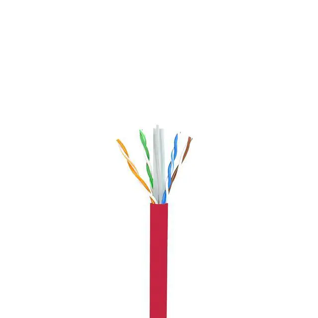 Cat6e Riser (CMR) bulk cable in red is 1000ft, 4 Pair, Unshielded Twisted Pairs (UTP), 24AWG, Solid Bare Copper Conductors for optimal signal strength. Top rated performance with 3-5 dB extra margin over EIA/ TIA- 568.2 -D standards. Suitable for PoE, PoE+. Our Cat6e riser cable is built with a spline for extra headroom performance and improvement against crosstalk. Our Cat6e has been tested with a Fluke DSX-8000 Versiv Cable Analyzer. ^^ Perfect for installations in your home and business, riser installs, in walls, between flooring and can be substituted for CM rated applications.