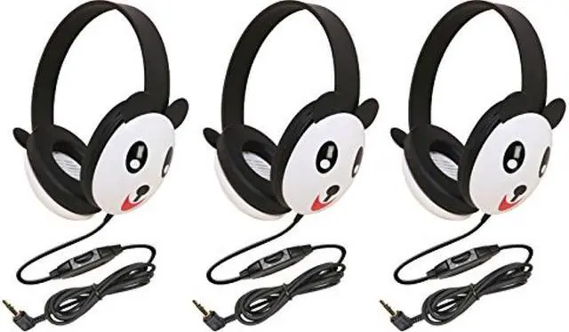 Califone 2810-PA Panda Motif Listening First Stereo Headphone (Pack of 3), Adjustable headband comfortable for extended wear, Specifically sized for young childrenThe playful bear motif Listening First headphone is specifically built for young students with safety as its first concern. Rugged ABS plastic earcups withstand daily use with adjustable volume control for individual preferences. This stereo headphone is ideal for story-time, library and computer uses. Key FeaturesAdjustable headband comfortable for extended wear Specifically sized for young children Permanently attached cord with reinforced strain relief connection which resists accidental pull out Volume control for individual preferences Right angle 3.5 mm plug reduces accidental pull-outs 5.5 straight cord to reach computer, media player, or jackbox Ambient noise-reducing earcups keep students on task and lower outside noise so volume does not need to be as high, as recommended by audiologists for hearing safety Protective slotted baffles prevent accidental damage from prying fingers& foreign objectsSpecificationsCone: 30mm