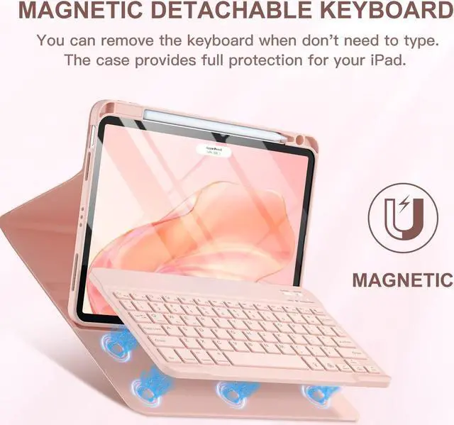 [(Detachable Backlit Keyboard)] The keyboard designed for iPad air 5/4 generation can be attached to the case with pretty strong magnets or detach completely. It is easy, fast and stable to connect via BT, reconnect immediately when turning it on. Using the optional backlight mode one color at a time or 7 colors breathing backlight, Picture yourself typing smoothly in the dark even at night for work