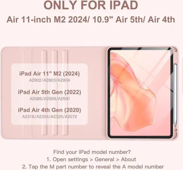 [(Compatibility)] This iPad air keyboard case is perfectly for New iPad Air 11-inch (M2) 2024 (Model Number: A2902/AA2903/A2904), iPad Air 5th Generation (Model Number: A2588/A2589/A2591), iPad Air 4th Generation 10.9 inch (Model Number: A2316/A2324/A2325/A2072). Not for other devices. Please be kindly check the model number No. starting with the letter "A" of your iPad back before order