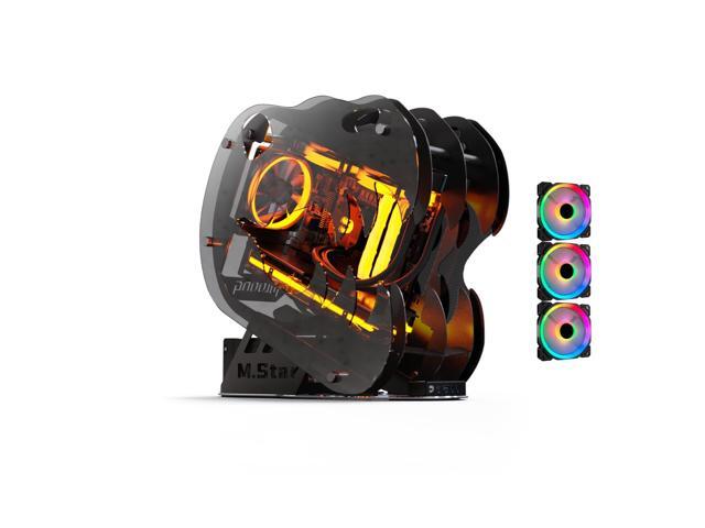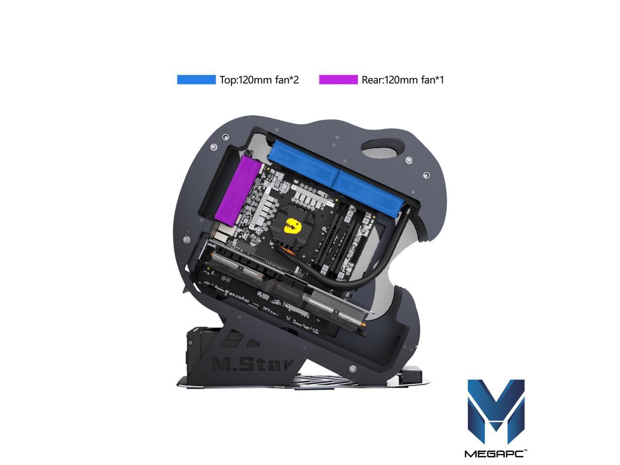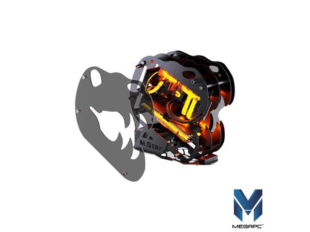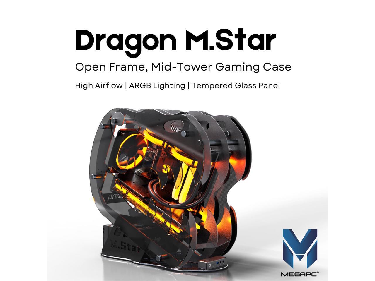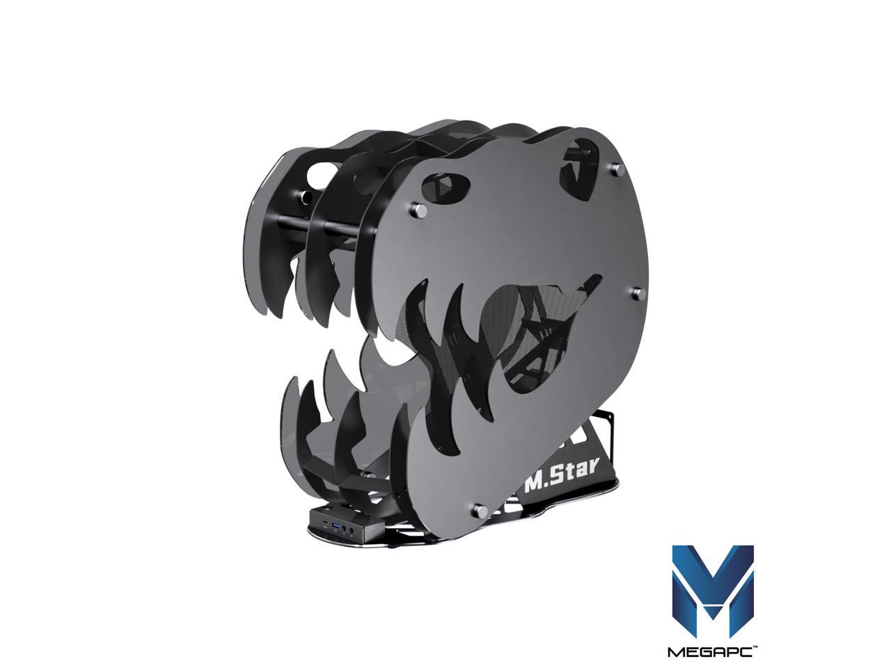 MegaPC Dinosaur M.Star Open-Frame Mid-Tower Micro-ATX/Mini-ITX Gaming Case - Tempered Glass Panels, High Airflow, ARGB Lighting, USB-C Port, Tool-Free Design (Black, with Fans Only)
