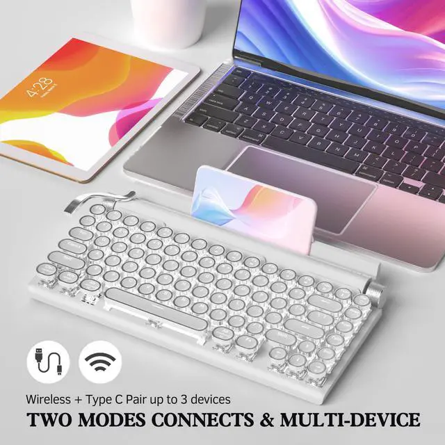 Double-Modes Connectivity: Offering versatile connectivity, the retro mechanical keyboard can be connected via USB-C or Bluetooth to three different devices. allowing you to switch b