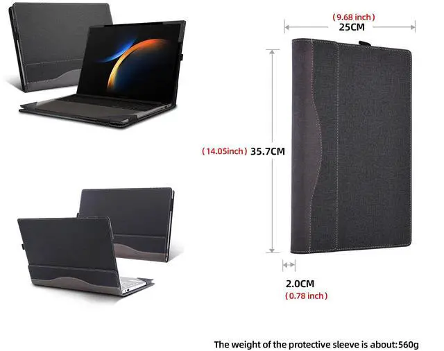 16 inches PU Leather Detachable Cover, protects all corners.The size of the protective sleeve is: 14.05X9.68X0.78inch. The computer should be close to this size and the acceptable error is about 1 inch. Otherwise, the sleeve may not fit in and be too large. Please check your model for purchase. It is not suitable for other 16-inch machines. Don't mind buying at will.