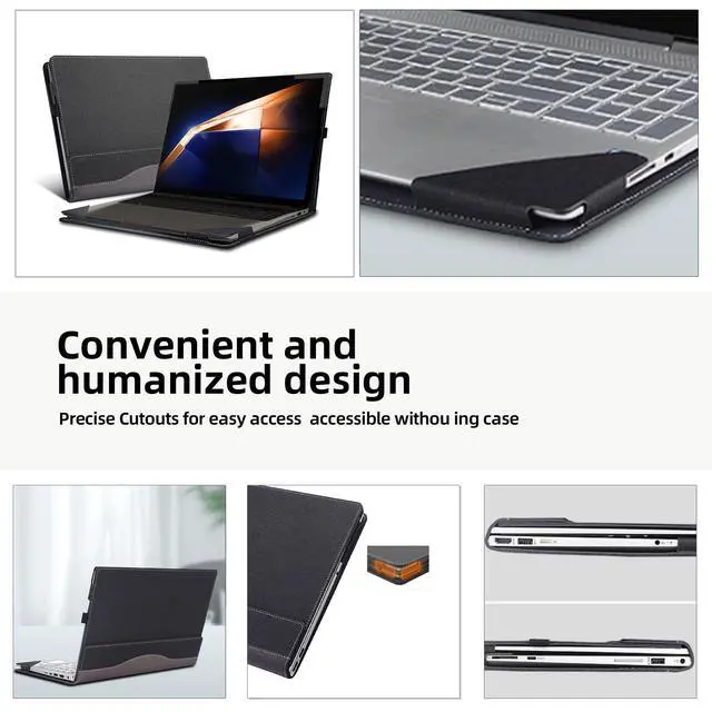 Laptop Cover16 inches for Samsung Galaxy Book 3 Pro^^Book3 Pro 360^^Book3 Ultra ^^Galaxy Book 4 Pro^^Book 4 Pro 360 2-in-1^^Book 4 Uitra^^16 inches PU Leather Detachable Cover (Gray Black)