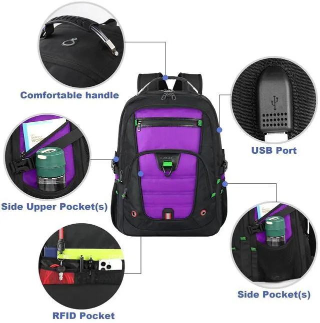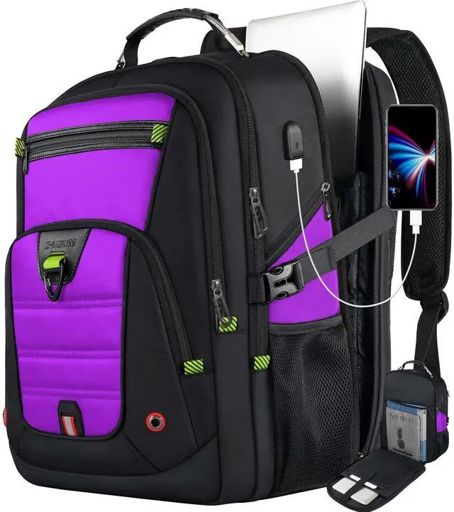 Z-MGKISS Extra Large Laptop Backpack, Water-Resistant 18.4 -19 Inch Travel Backpack for Men & Women - Stylish Purple School Bag with USB Charging Port and Multiple Compartments