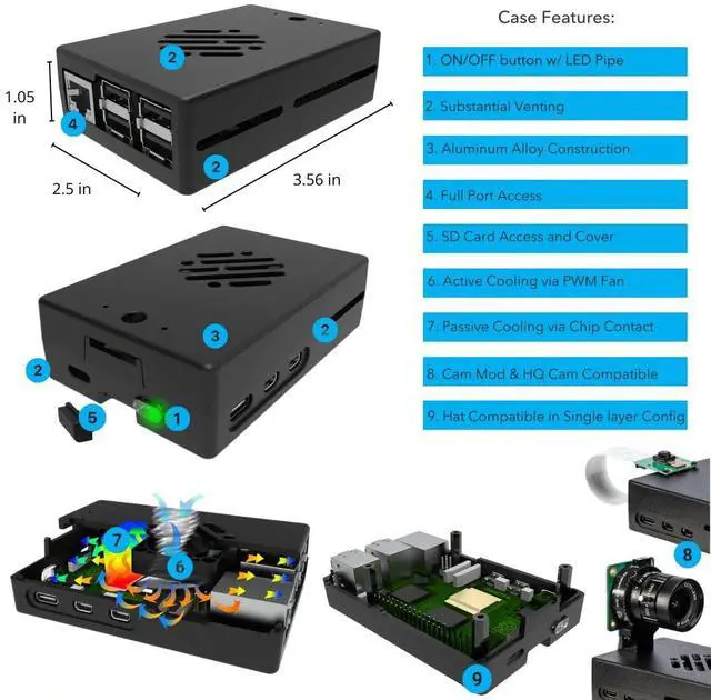 Enhanced Cooling System for Reliable, Long-Lasting Performance: Keep your Raspberry Pi running smoothly with our advanced cooling system that prevents overheating and optimizes performance. Featuring a whisper-quiet fan and efficient heat sinks, your device is built to last, ensuring consistent and reliable use for any project.