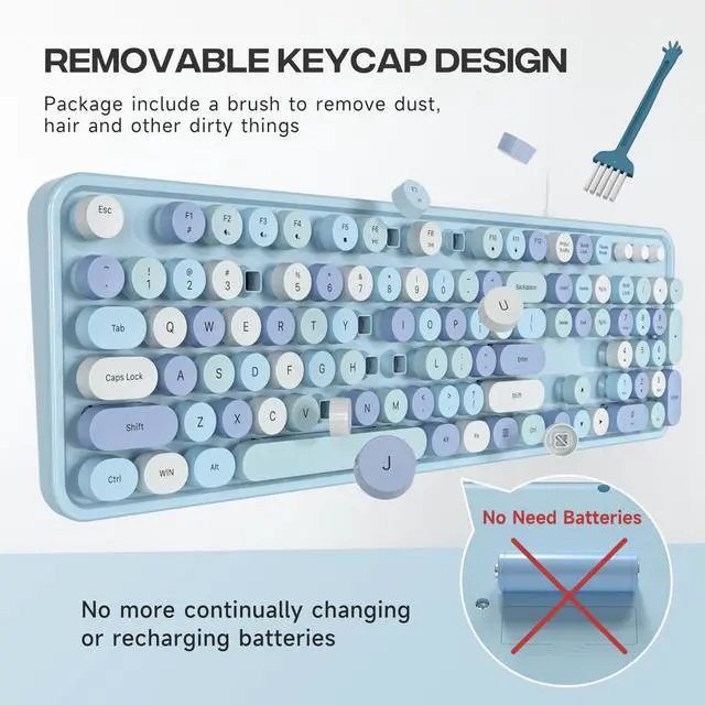 [(Retro Typewriter Keyboard)] Cute round keycaps, crisp and sweet sound, perfect knocking feel, let you find the feeling of a retro typewriter. And it's detachable, making the keyboard easy to clean.