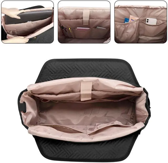 GENEROUS SPACE: Fasrom teacher bag features 3 compartments to hold all your work essentials. The main compartment is equipped with a padded sleeve that can accommodate laptops up to 15.6 inches. Front and back layers provide enough space to hold your folders, binders and clipboards. (Empty bag only, NOT includes any supplies and long shoulder strap.)