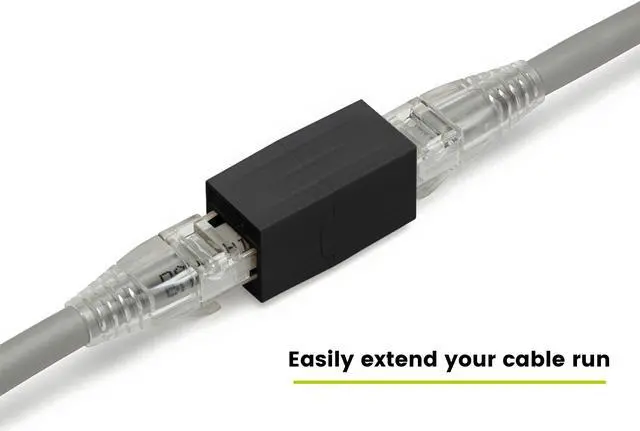 EASY TO USE. Our 180deg RJ45 to RJ45 feed through inline couplers are designed for on the go convenience. The reusable inline design makes it easy to disconnect and relocate as needed. Ideal for non permanent installations.