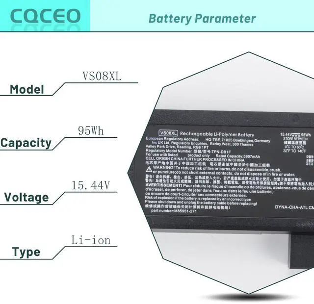 CQCEO VS08XL Laptop Battery for Hp ZBook Fury 16 G9 Mobile Workstation Series TPN-IB0N TPN-DB1F M85951-171 M86087-001 M85951-271 15.44V /95Wh/5907mAh