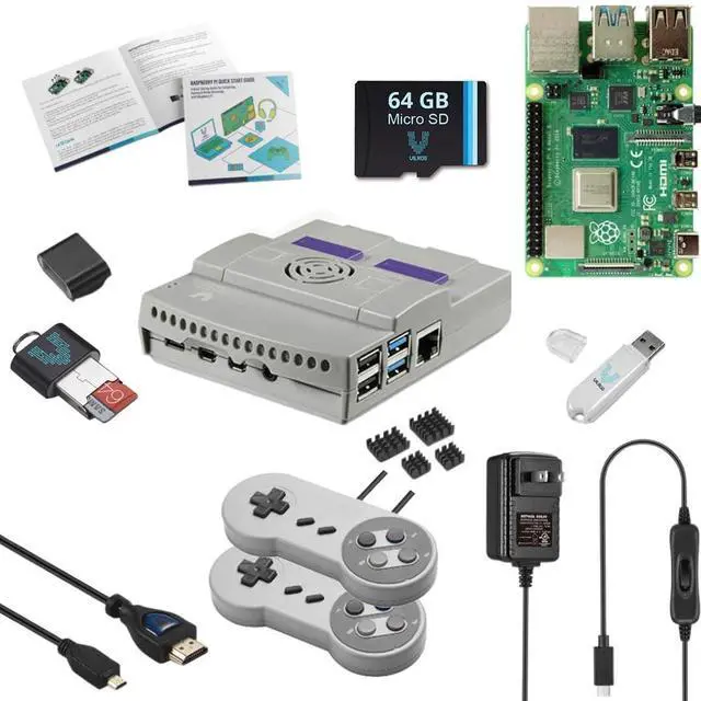 Warranty IMPORTANT NOTES: The Micro SD card may appear as to be of smaller capacity when inserted into a PC as it is pre-partitioned, If formatted with partition removal it will then show the full capacity which can be expanded as desired. This Raspberry Pi Gaming system is hooked up to screen, during initial setup a USB mouse is required, please note that the screen and mouse are not included in this kit. Games are NOT Included. Relive the golden age of gaming with the Vilros Raspberry Pi 4 Retro Gaming Kit. This comprehensive kit is designed for tech-savvy retro gamers who want a nostalgic gaming experience without the hassle. Packed with essential components, this kit includes the Raspberry Pi 4 Model B with 4GB RAM, ensuring smooth performance for all your retro gaming needs. The kit also features two Vilros USB famepad controllers, perfectly weighted for the ideal retro gaming feel. The 64GB Class 10 Micro SD card comes preloaded with NOOBS, giving you everything you need to start gaming right away. The included Vilros Gaming-style case is designed to house your Raspberry Pi 4 with easy access to all ports, and it also features a built-in cooling fan to keep your system running smoothly.